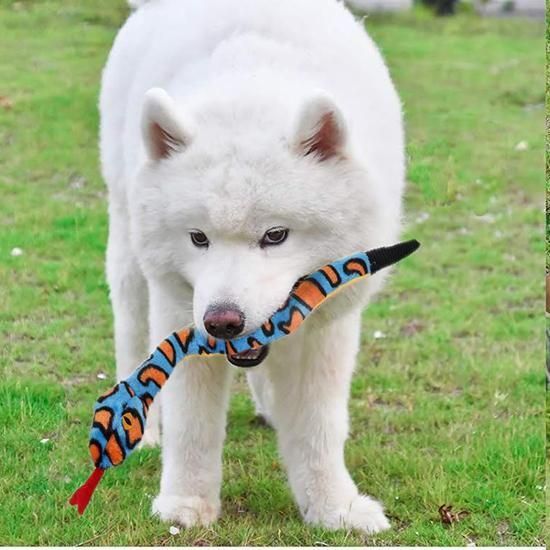 噛むたびに内蔵されたヘビの骨がギシギシ鳴り、愛犬の遊び心を刺激します。
