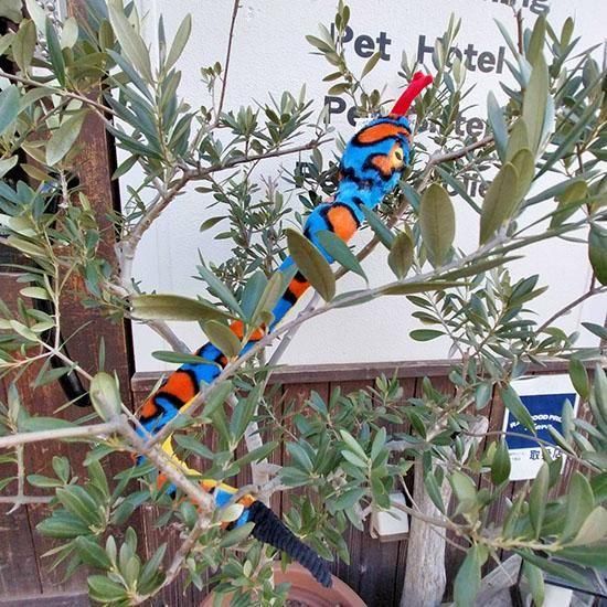 しっぽの先にはクリンクルペーパーを使い、へびが発する警戒音を再現。カサカサカサと音を立てます。