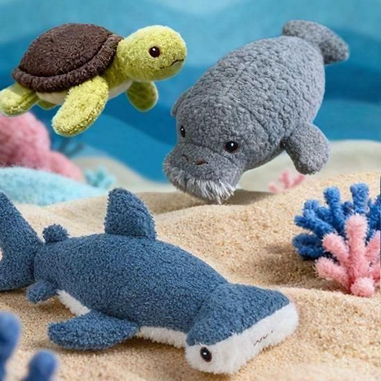 マナティ、ハンマーヘッド、カメ、クロコダイルをモチーフにした可愛らしいキャラクターが沢山。